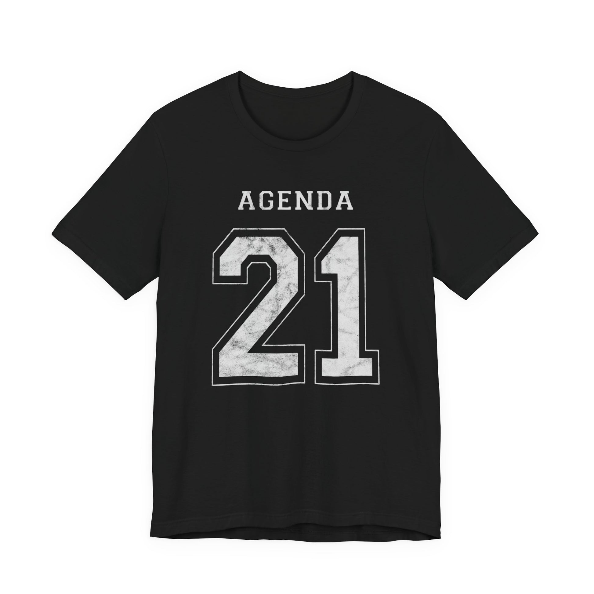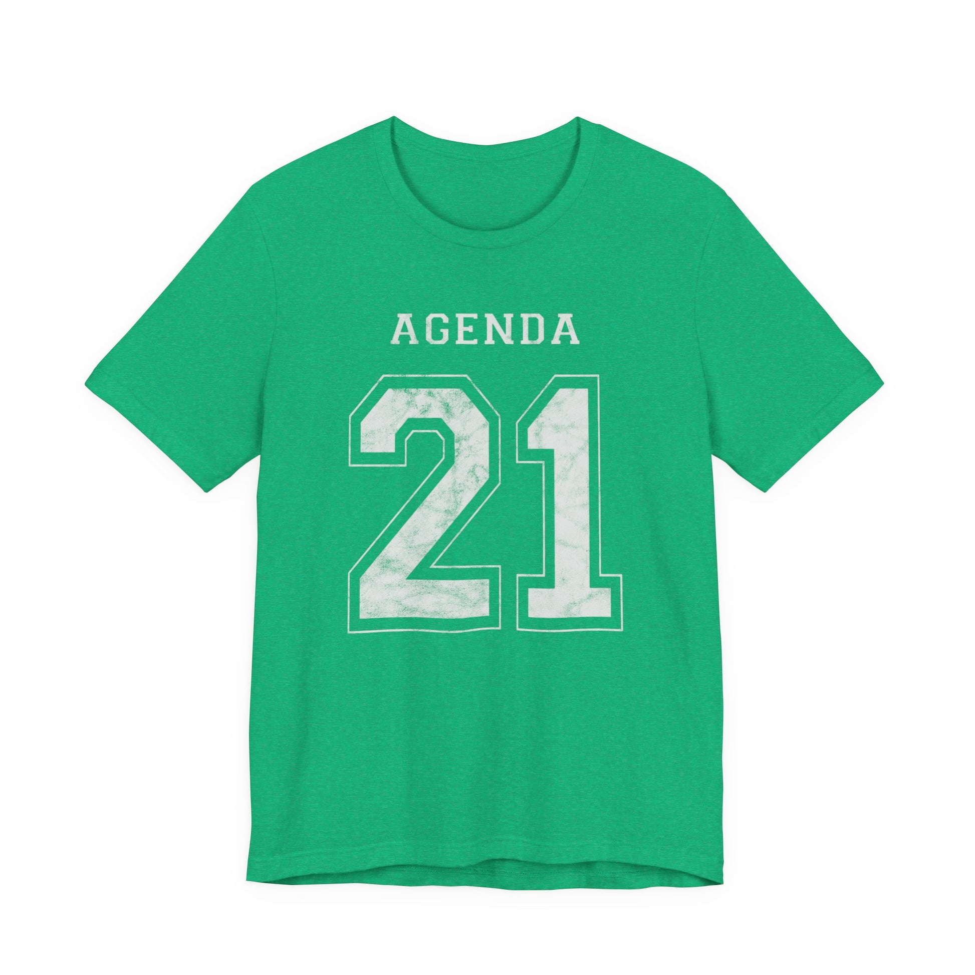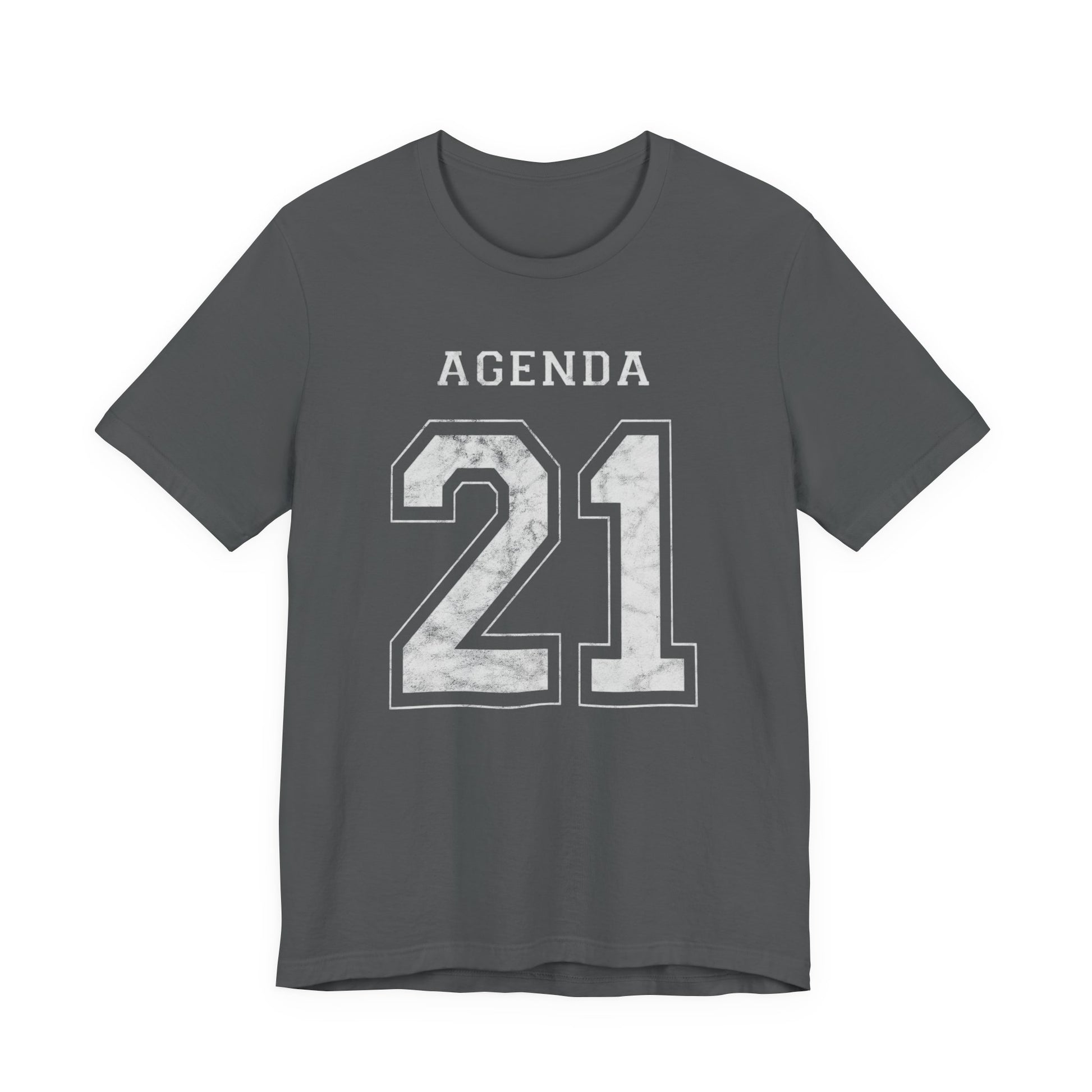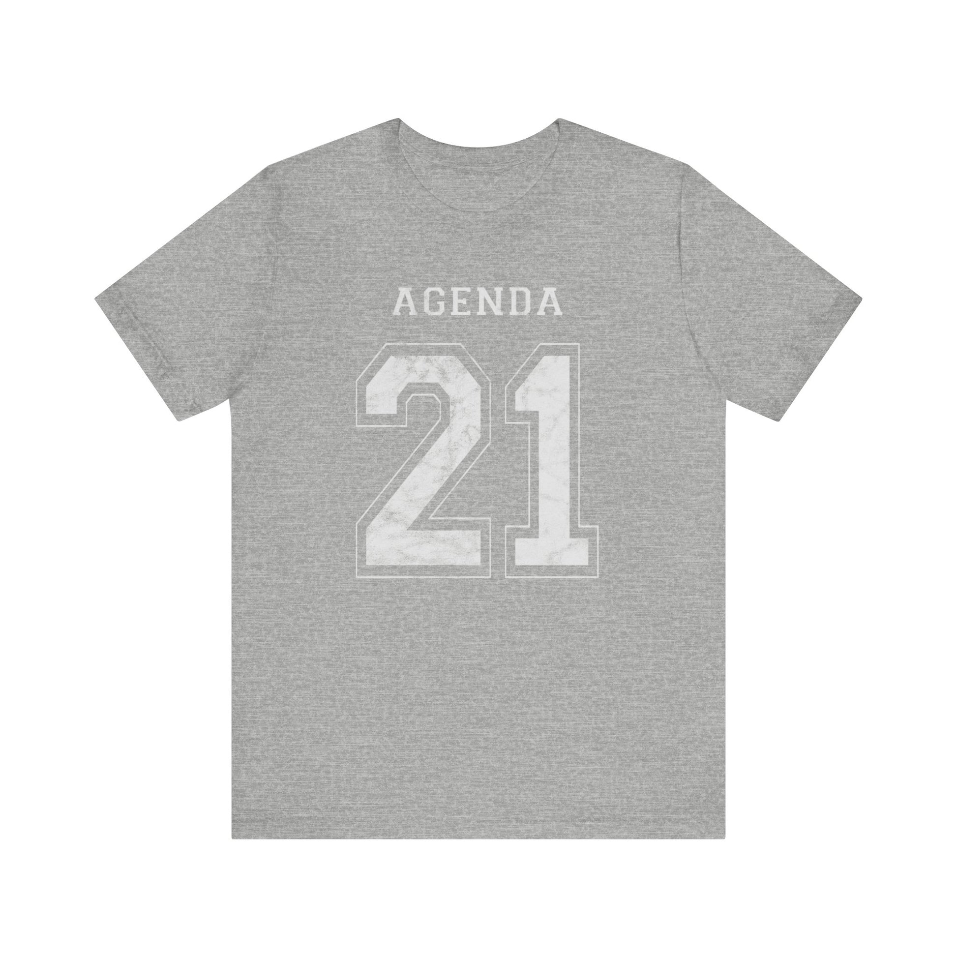 Football design. Agenda 21. What is it? Google it if you don't know. And if you do know, then buy one of these T-Shirts so you can warn others about it. Wake people up with this stylish conversation starter. Hurry up before globalism, the UN, the Bilderberg Group, the CFR and evil totalitarianism runs us over. Spread the word or face the consequences: tiny houses and synthetic meat! This Agenda 21 football jersey-style design looks like a football shirt but is really activist outreach. This classic unisex jersey short sleeve tee fits like a well-loved favorite. Soft cotton and quality print make users fall in love with it over and over again. These t-shirts have-ribbed knit collars to bolster shaping. The shoulders have taping for better fit over time. Dual side seams hold the garment's shape for longer.