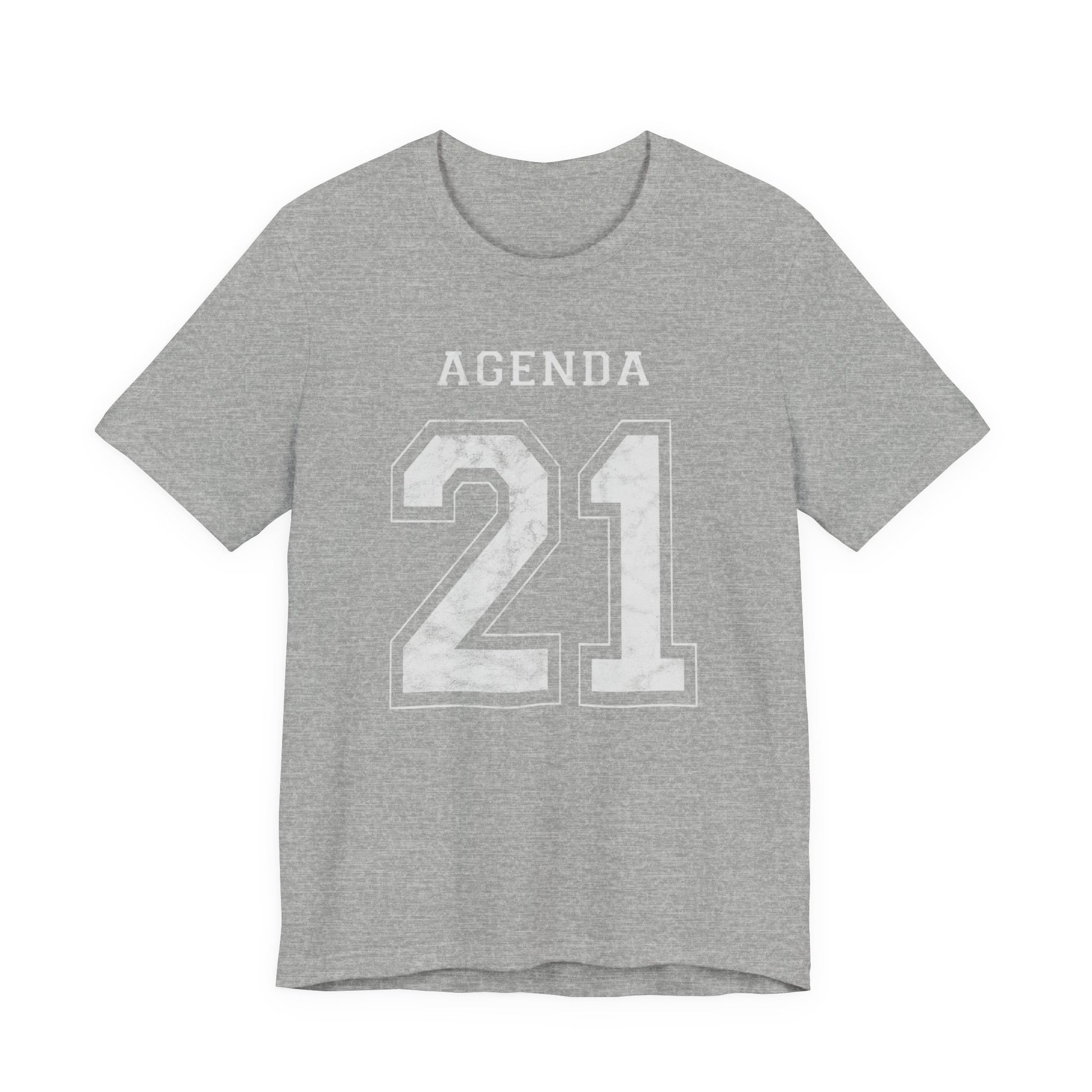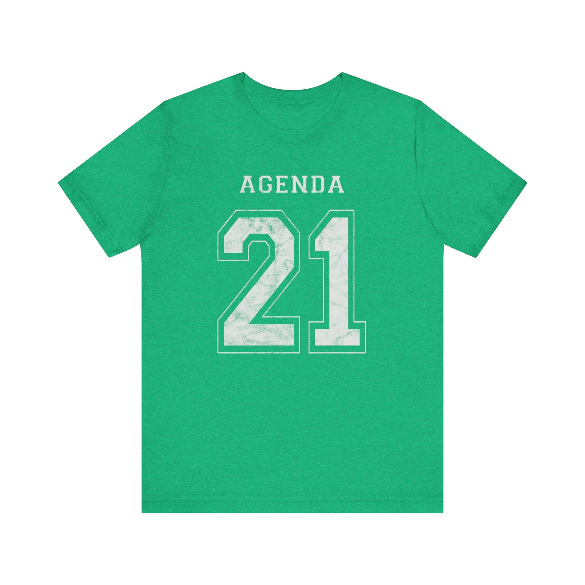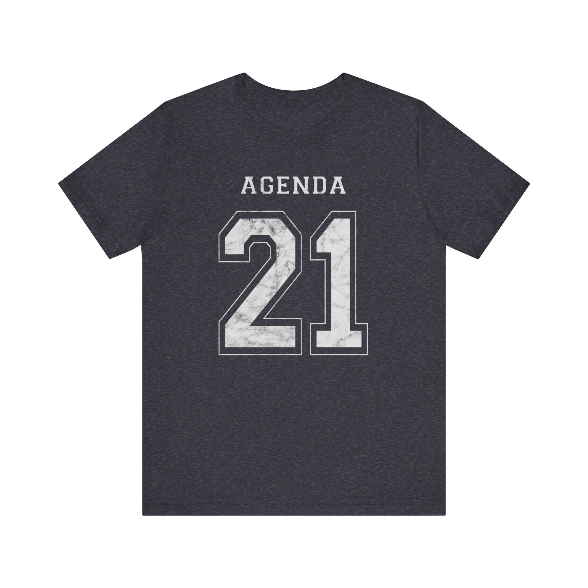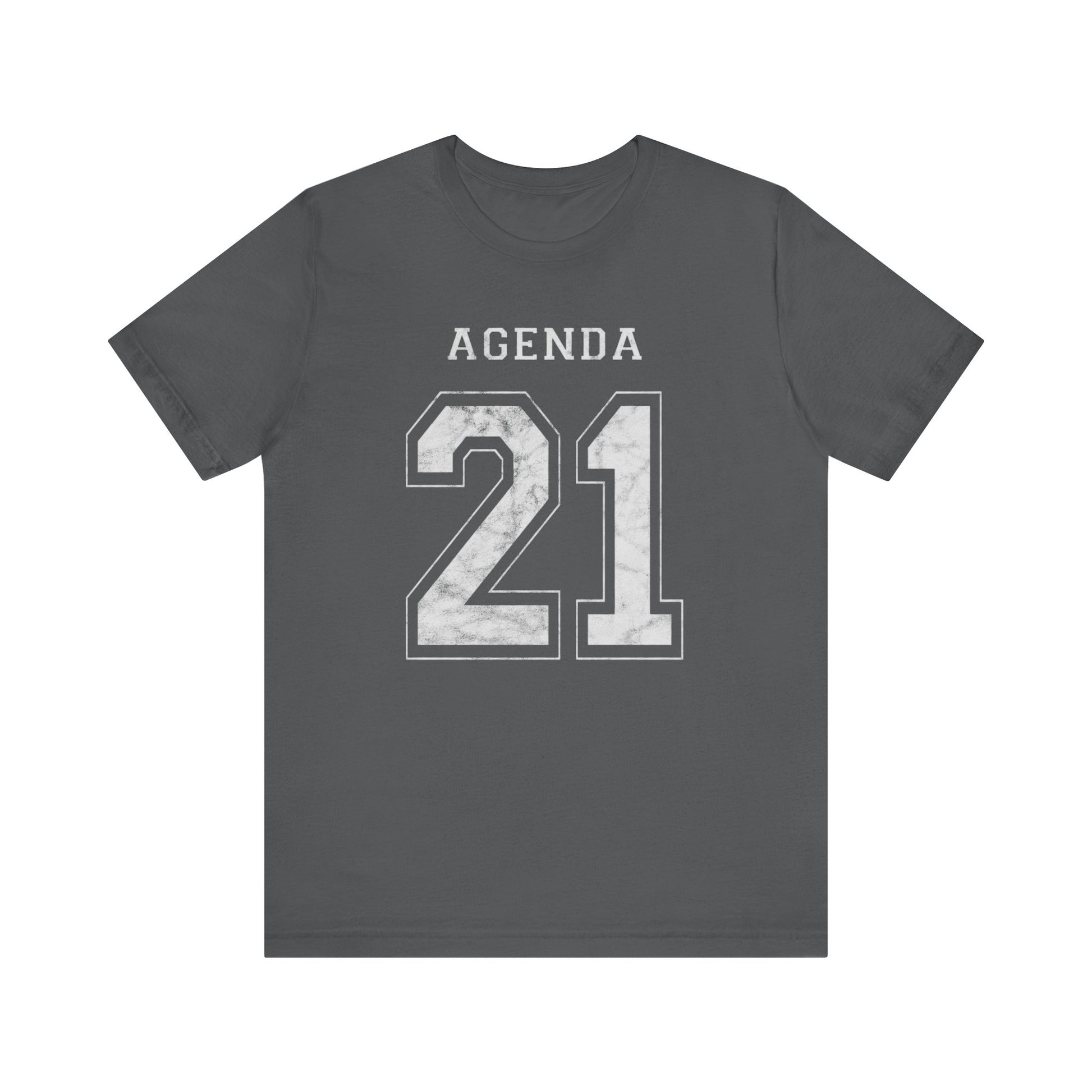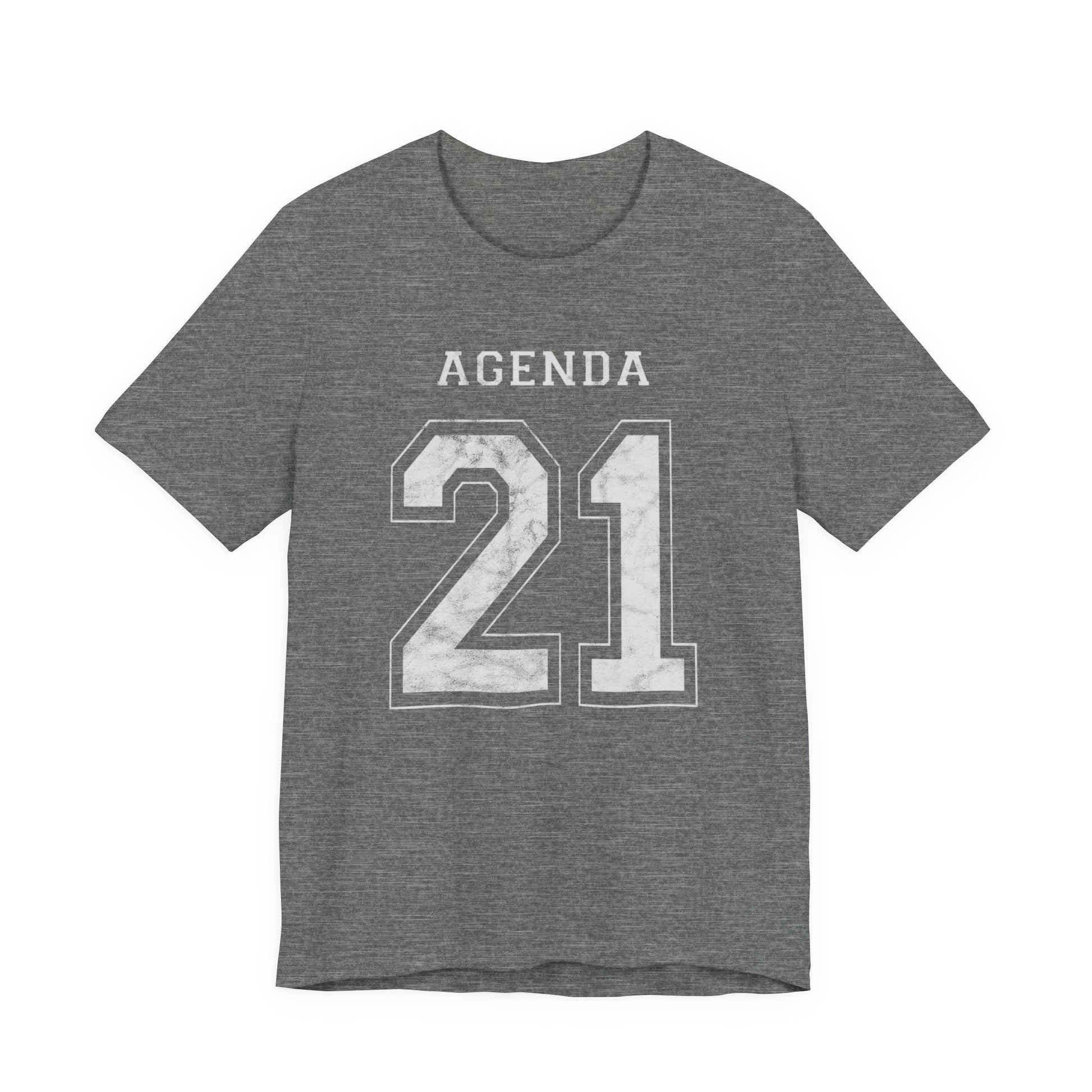 Football design. Agenda 21. What is it? Google it if you don't know. And if you do know, then buy one of these T-Shirts so you can warn others about it. Wake people up with this stylish conversation starter. Hurry up before globalism, the UN, the Bilderberg Group, the CFR and evil totalitarianism runs us over. Spread the word or face the consequences: tiny houses and synthetic meat! This Agenda 21 football jersey-style design looks like a football shirt but is really activist outreach. This classic unisex jersey short sleeve tee fits like a well-loved favorite. Soft cotton and quality print make users fall in love with it over and over again. These t-shirts have-ribbed knit collars to bolster shaping. The shoulders have taping for better fit over time. Dual side seams hold the garment's shape for longer.